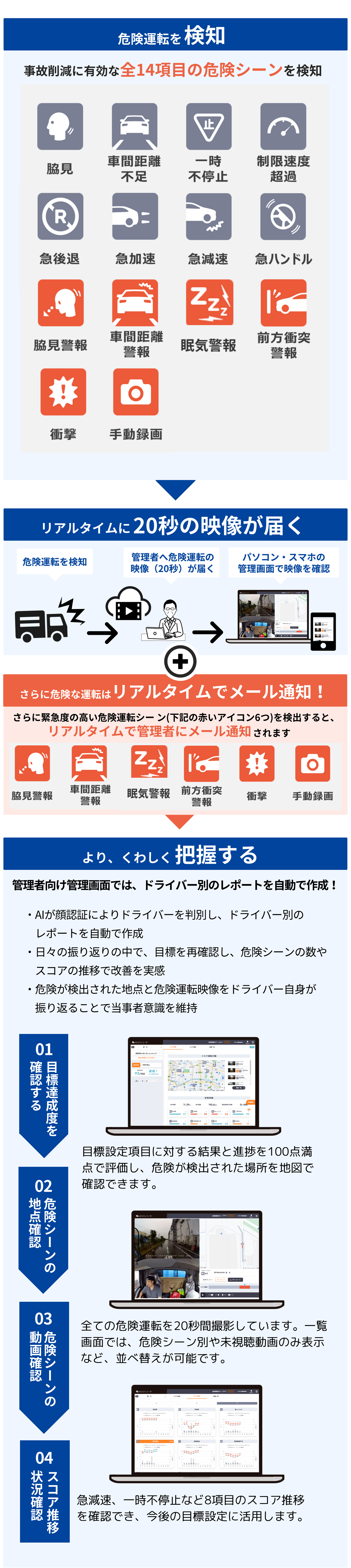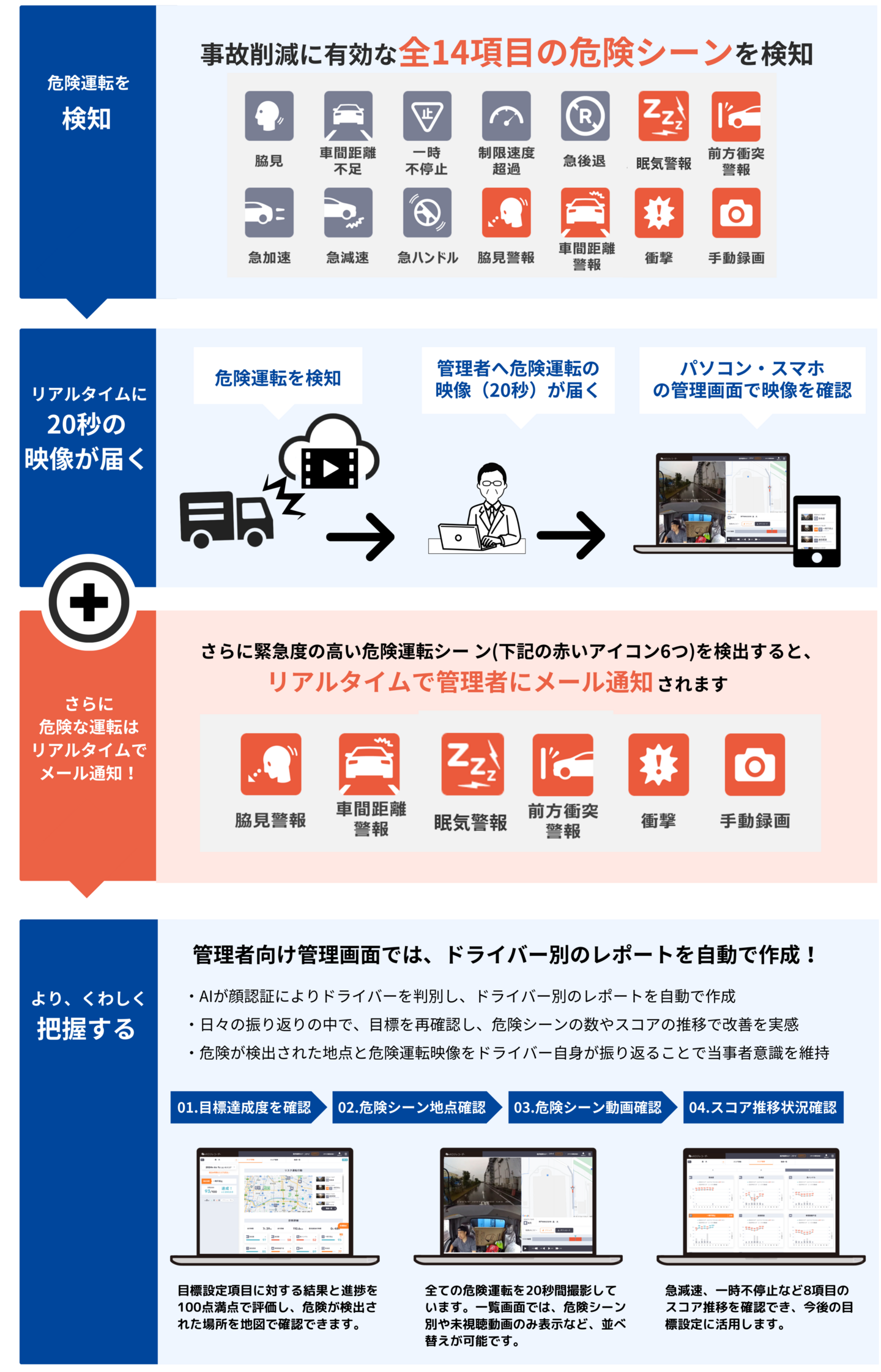 今まで「気づかなかったリスク運転行動」をリアルタイムで検知&分析&把握!