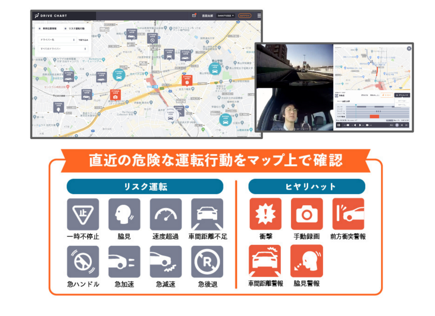 また、特に気を付けて走行してほしいルートについて、ライブマップを用いながらの説明・指導ができます。
