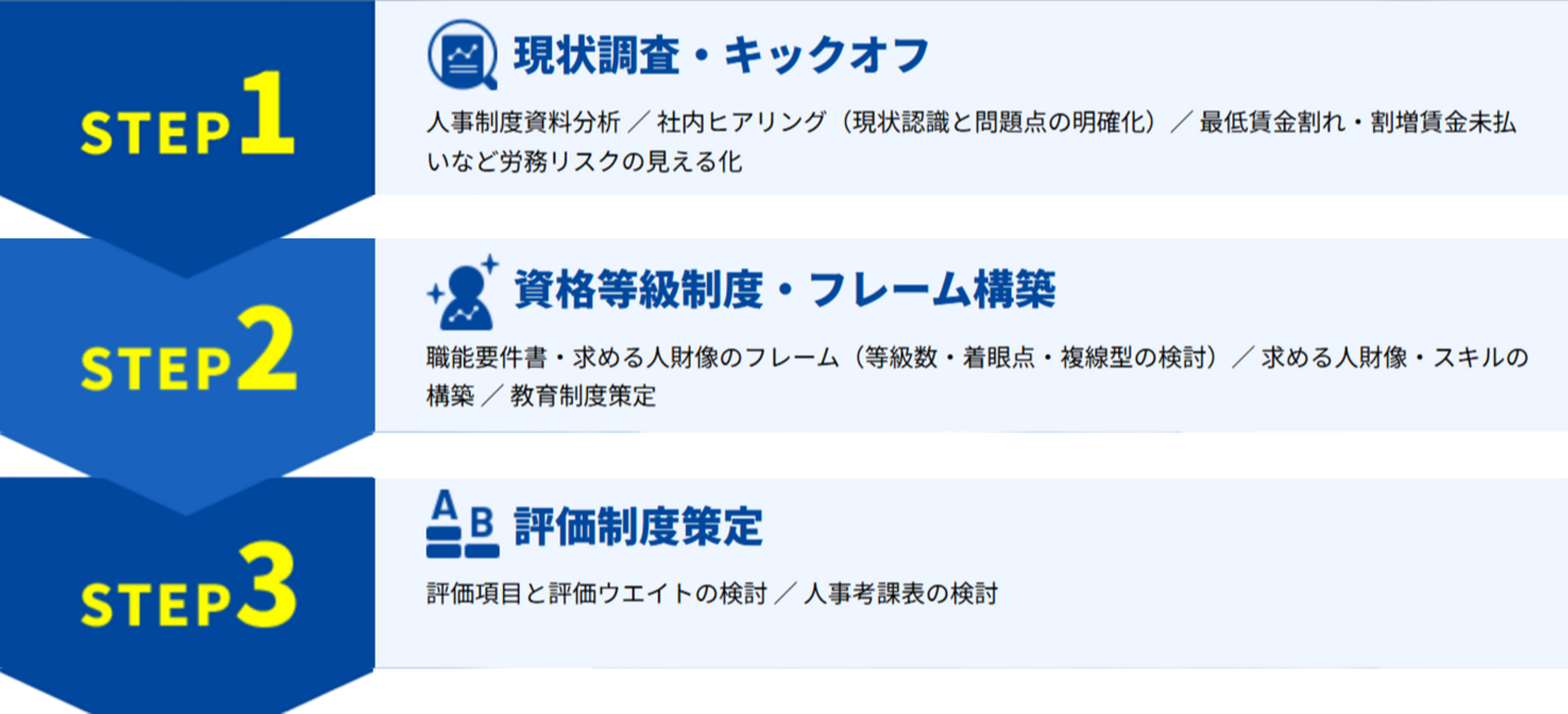 「社員の品質向上」「安全・事故防止」など、会社が求める働き方やキャリアステップ、役割を従業員に示して、処遇へと反映させます。