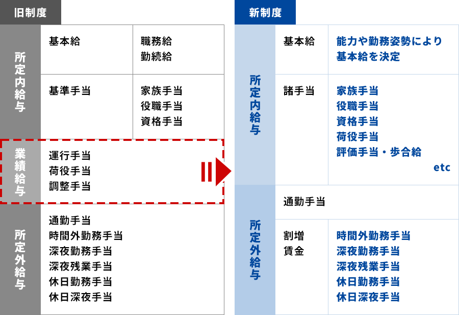 一方で、時間軸給は生産性が低い(仕事が遅く、ダラダラ残業をしている)社員の給料が高くなる、との懸念から賃金体系の見直しを躊躇している会社も多いようです。時間軸給をベースとしながら、社内標準運賃や手積み・手降ろしといった作業に応じた手当、評価給(諸手当)を上手く取り入れながら、納得性の高い人事制度を構築いたします。