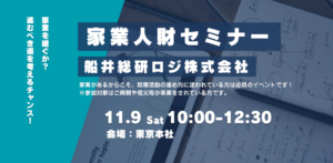 【船井総研ロジ初】11月9日(土) 家業人財向け新卒採用イベント!